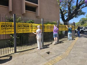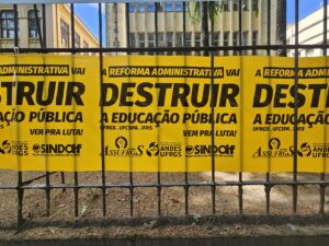 No dia 26 de novembro, em conjunto com ASSUFRGS e SINDOIF, iniciamos o “envelopamento” dos campi da UFRGS, UFCSPA e IFRS, chamando atenção da população e das comunidades dessas instituições para o fato de que se a Reforma Administrativa for aprovada ela vai destruir a educação pública.