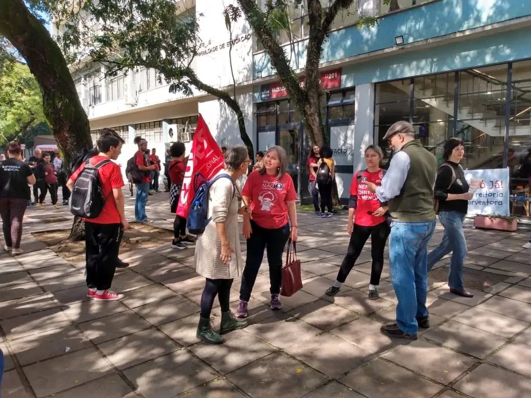 O ANDES/UFRGS participou, na quinta-feira (10), do Dia Nacional de Paralisação pela Educação Pública, convocado pelo Andes-SN, Fasubra e Sinasefe. Após ato Unificado em frente à Faculdade de Educação, houve caminhada até a reitoria da universidade. Além de docentes e técnicos(as) da UFRGS, participaram servidoras e servidores da UFCSPA, IFRS, UFSM, UFPel e FURG, mobilizados contra o sucateamento do setor e em defesa da valorização da categoria.