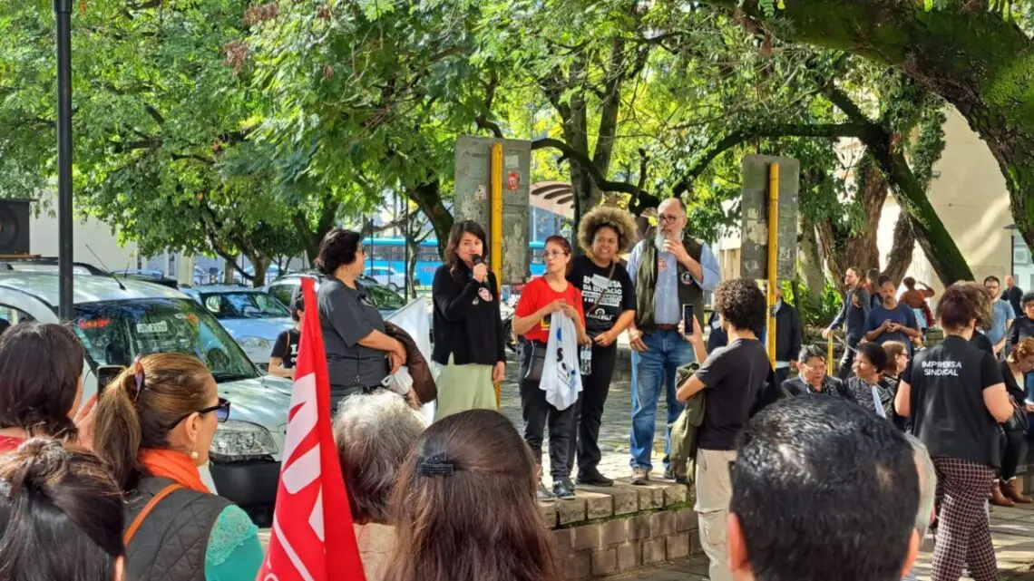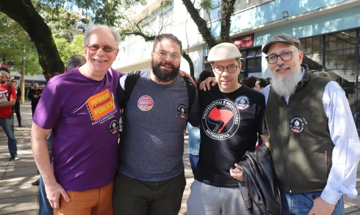 “Estamos defendendo a recomposição da nossa carreira, e das perdas salariais dos últimos anos, mas a nossa luta também é contra o Novo Ensino Médio. A gente não aceita melhorismos, a gente quer um projeto que atenda aos interesses da classe trabalhadora, da educação infantil até a pós-graduação, que seja um projeto da classe para a classe”, lembrou Daniele Cunha, tesoureira da Regional Rio Grande do Sul do Andes-SN e professora do Colégio de Aplicação da UFRGS.