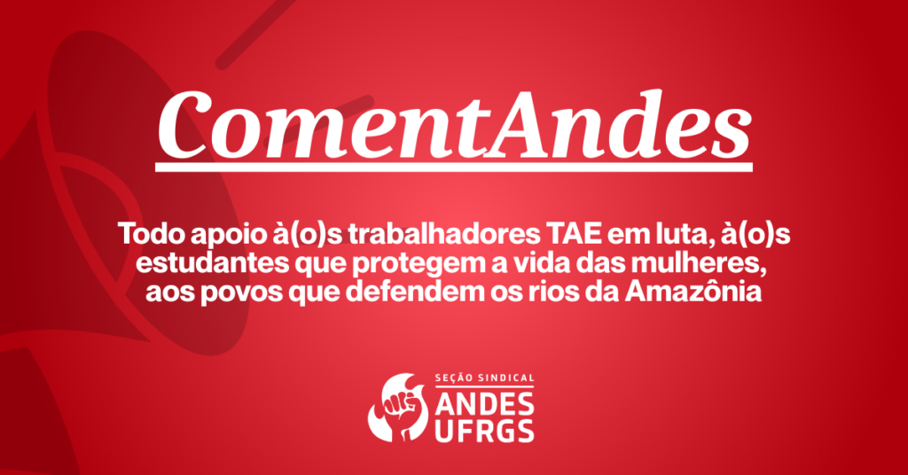 Todo apoio à(o)s trabalhadores TAE em luta, à(o)s estudantes que protegem a vida das mulheres, aos povos que defendem os rios da Amazônia
