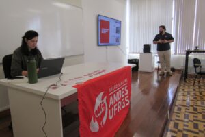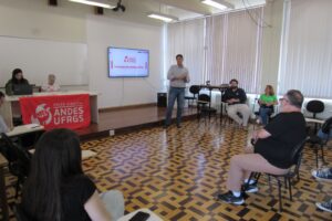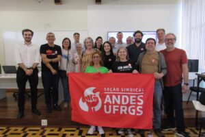 Ítalo Guerreiro e Ricardo Souza, da ASSUFRGS, reafirmaram o apoio ao ANDES-SN. “Estamos ao lado do ANDES-SN, como o coletivo de docentes da universidade que tem legitimidade para representar toda a categoria docente da UFRGS e nacionalmente também. Parabenizamos a chapa eleita e nos posicionamos lado a lado, na luta contra a Reforma Administrativa, que destrói o serviço público, que é compromissado com a população brasileira, que entrega objetivos, serviços de extrema qualidade para a sociedade”.
