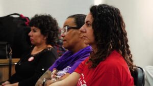 Da mesa de abertura do segundo dia e inauguração do espaço participaram ainda Daniele Azambuja Cunha (ANDES/UFRGS – 1ª Vice-presidenta da Regional RS), André Martins (IFRS – 2º Vice-presidente da Regional RS), e César André Luiz Beras (Ex-1° Vice-presidente da Regional do ANDES-SN – FURG).